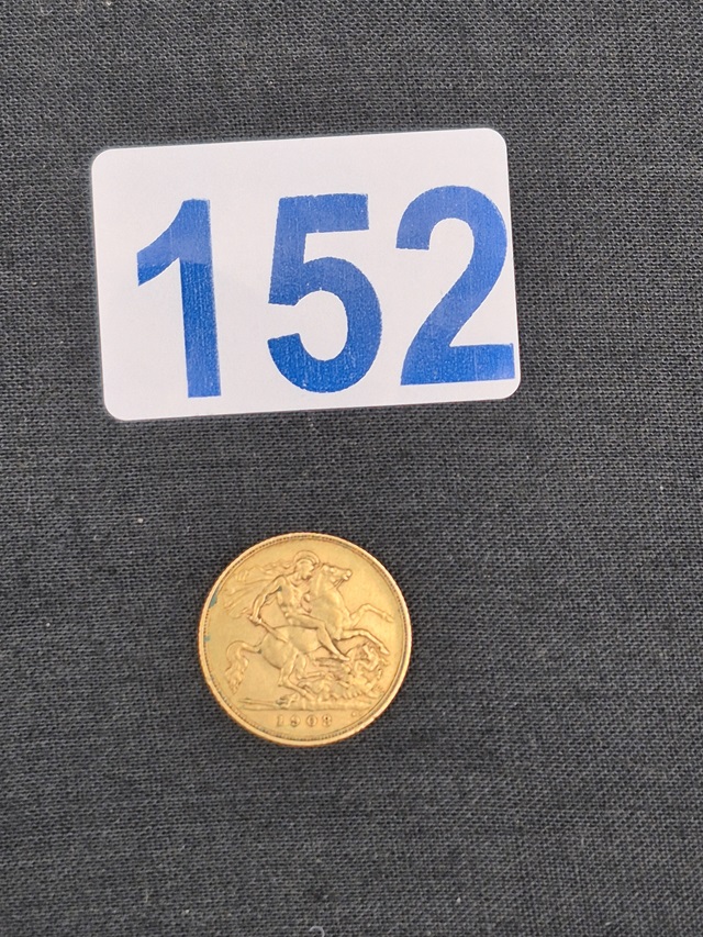 Lot 152 - 1908 half Sovereign Approx 4 Grams SOLD £300 |