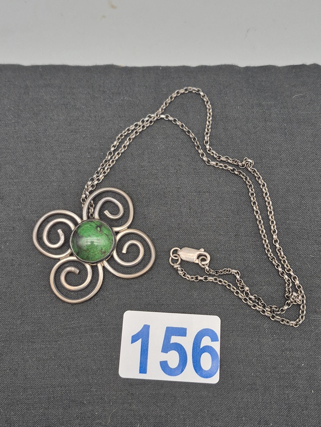 Lot 156 - Silver pendant and chain with Malachite gemstone SOLD £12 |