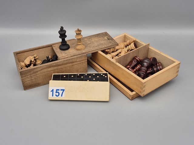 Lot 157 - 2 chess sets & set of Dominoes made in USSR SOLD £2 |