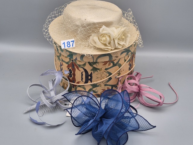 Lot 187 - 3 Fascinators , 1 hat and a hat box NOT SOLD |