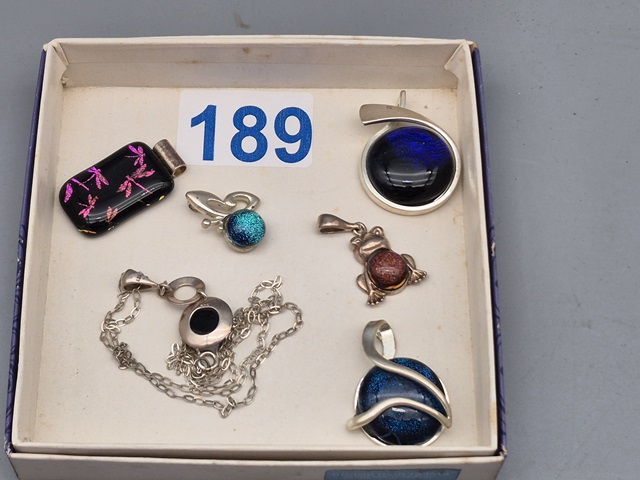 Lot 189 - 6 handmade Dichroic glass pendants SOLD £10 |