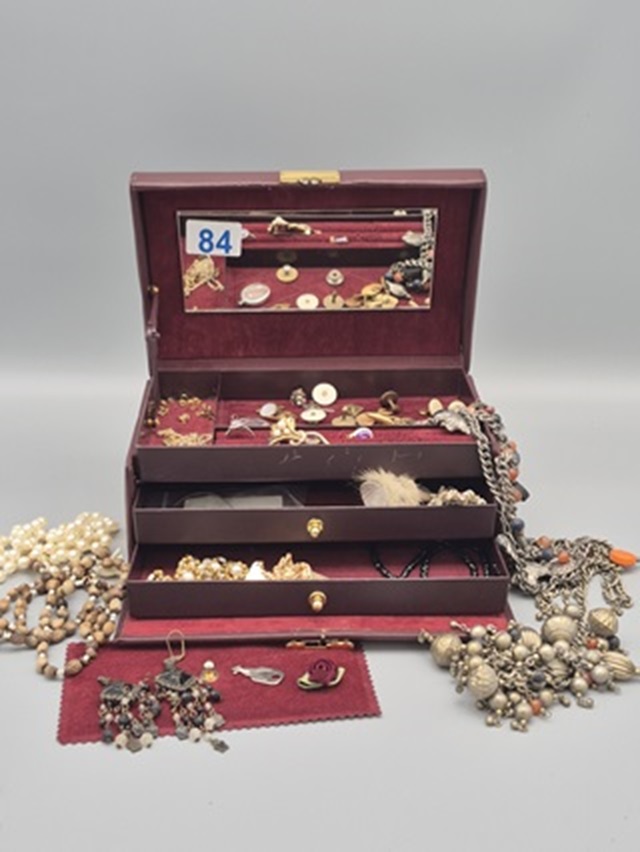 Lot 84 - Jewellery box, key & contents SOLD £10 |