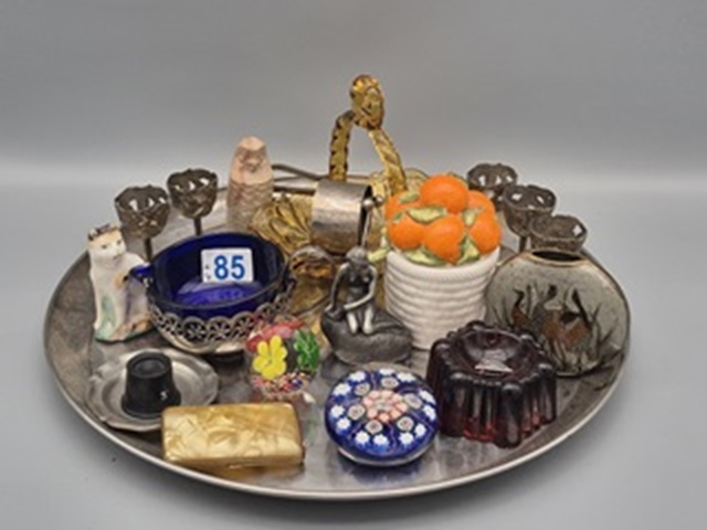 Lot 85 - Epns tray with collectible items SOLD £6 |