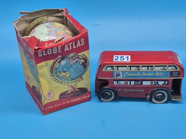 Lot 251 VINTAGE 1950'S WIND UP TIN BUS & VINTAGE GLOBE IN ORIGINAL BOX |