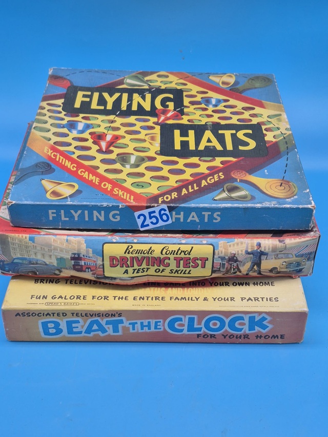 Lot 256 3 VINTAGE GAMES , FLYING HATS, BEAT THE CLOCK, DRIVING TEST |